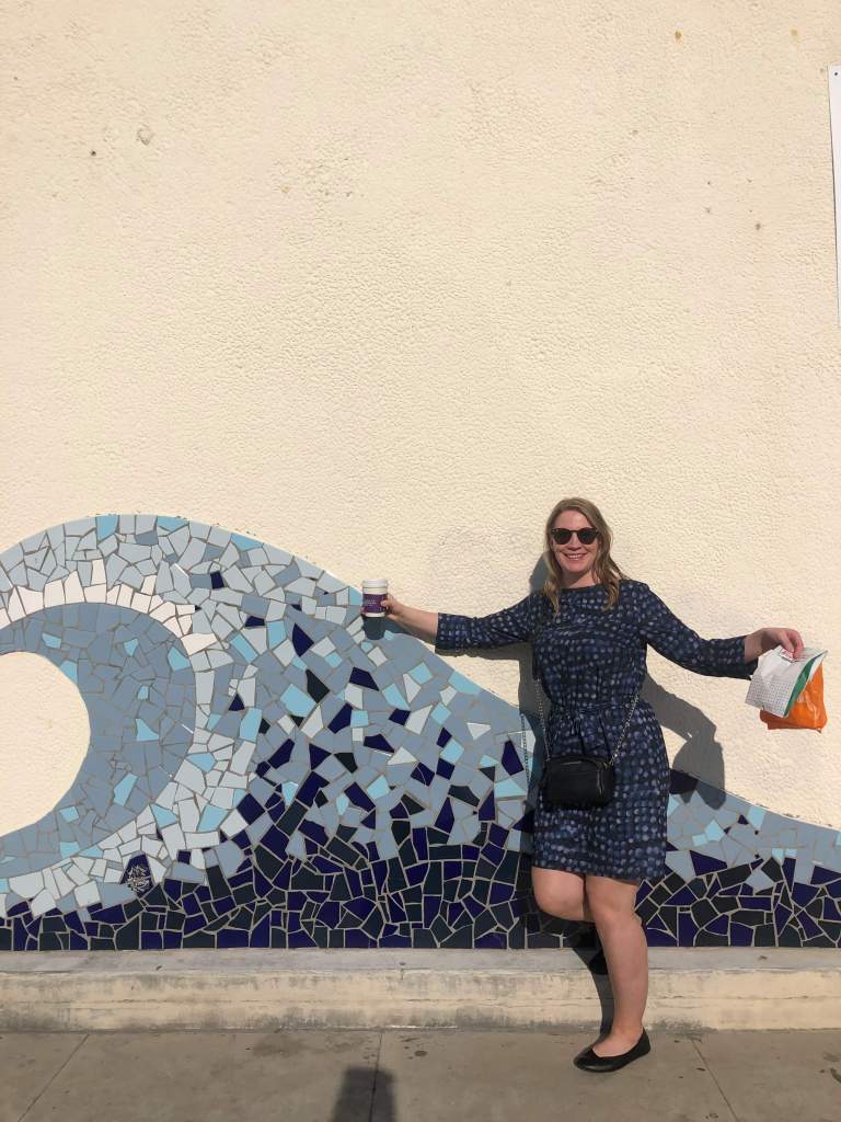 Santa Monicassa saimme auton parkkihalliin lähelle laituria, siinä oli ilmainen parkkeraus ensimmäisen tunnin ajan. Santa Monica beach ja pier olivat kivan näköisiä, laituri oli eloisa ja siellä oli pieni huvipuisto. Laituri oli aika turistikohde, mutta sympaattinen. Santa Monica pieriltä olisi myös voinut kävellä rantakatua pitkin Venice Beachille, joka oli seuraava kohteemme. Matkaa kuitenkin oli useampi kilometri ja lättäpohjaiset balleriinat ei ole parhaat kävelykengät, joten menimme autolla.