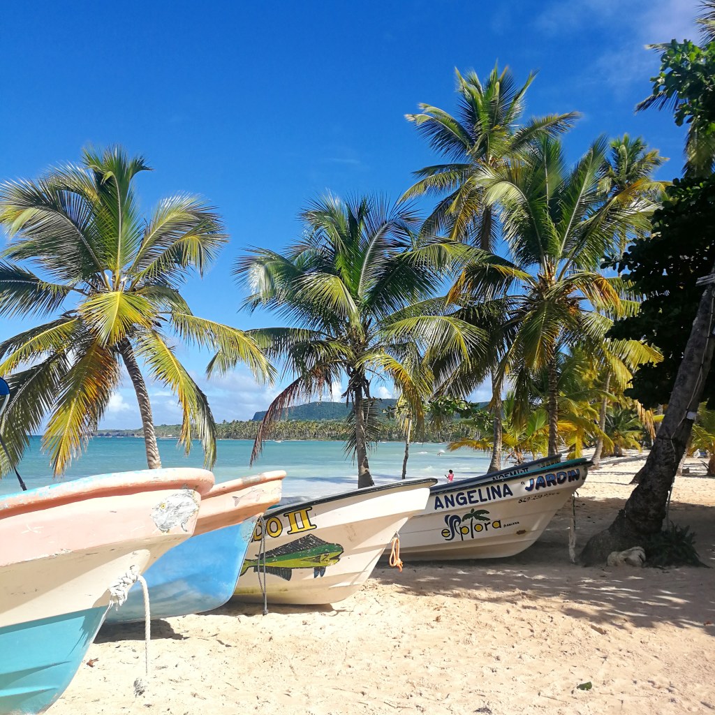 Yhtenä päivänä vuokrasimme kuljettajalla varustetun minibussin ja matkustimme Puerto Platasta Samanaan. Kyseessä oli noin neljän tunnin ajomatka. Ensimmäinen pysähdys oli Las Galerasin ranta. Upea! Vihdoin koin olevani Karibialla. Täällä hiekka oli valkoista, palmut kaartuivat meren ylle ja upea turkoosi merivesi.