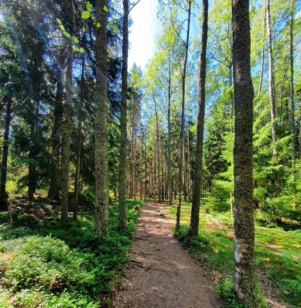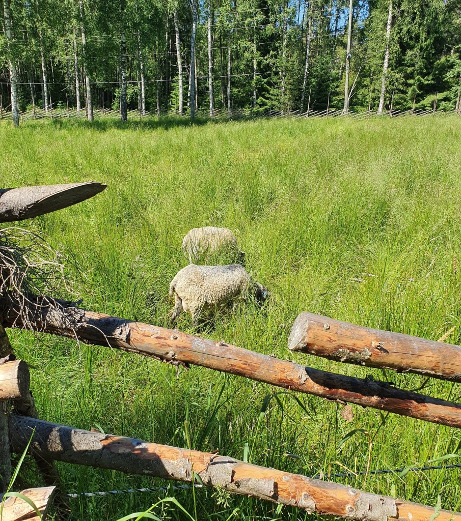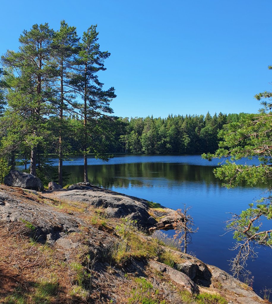 Alueelta löytyy infopiste, josta saimme kartan ja kävelyohjeet järvelle. Matkalla järvelle näkyi myös lampaita 🙂 Matkaan meni korkeintaan kymmenen minuuttia ja luontopolku metsän keskellä oli hyvin merkattu. Pentalanjärvihän on siis koko pääkaupunkiseudun eteläisin järvi ja tuon saarella sijaitsevan järven keskellä on myös saari. Jos luontopolkua olisi kulkenut toiseen suuntaan, olisi sieltä löytynyt myös meren rannasta hiekkaranta Diksand, mutta me halusimme uida tällä kertaa mielummin järvessä kuin meressä.