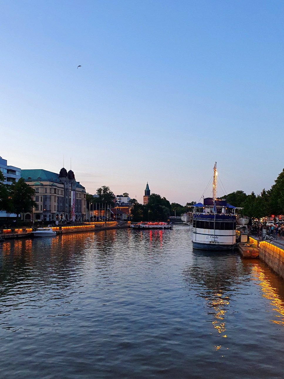 Ilta Turussa oli joka tapauksessa hauska ja aloitimme illan syömällä Nooa-nimisessä ravintolassa Aurajoen rannassa. Ravintola oli viihtyisä ja kattoterassilla oli kaunis jokimaisema. Päivän kala -annos oli erinomaista ja palvelu ystävällistä, iloista ja tehokasta. Eli tämä ravintola oli ihan nappivalinta!