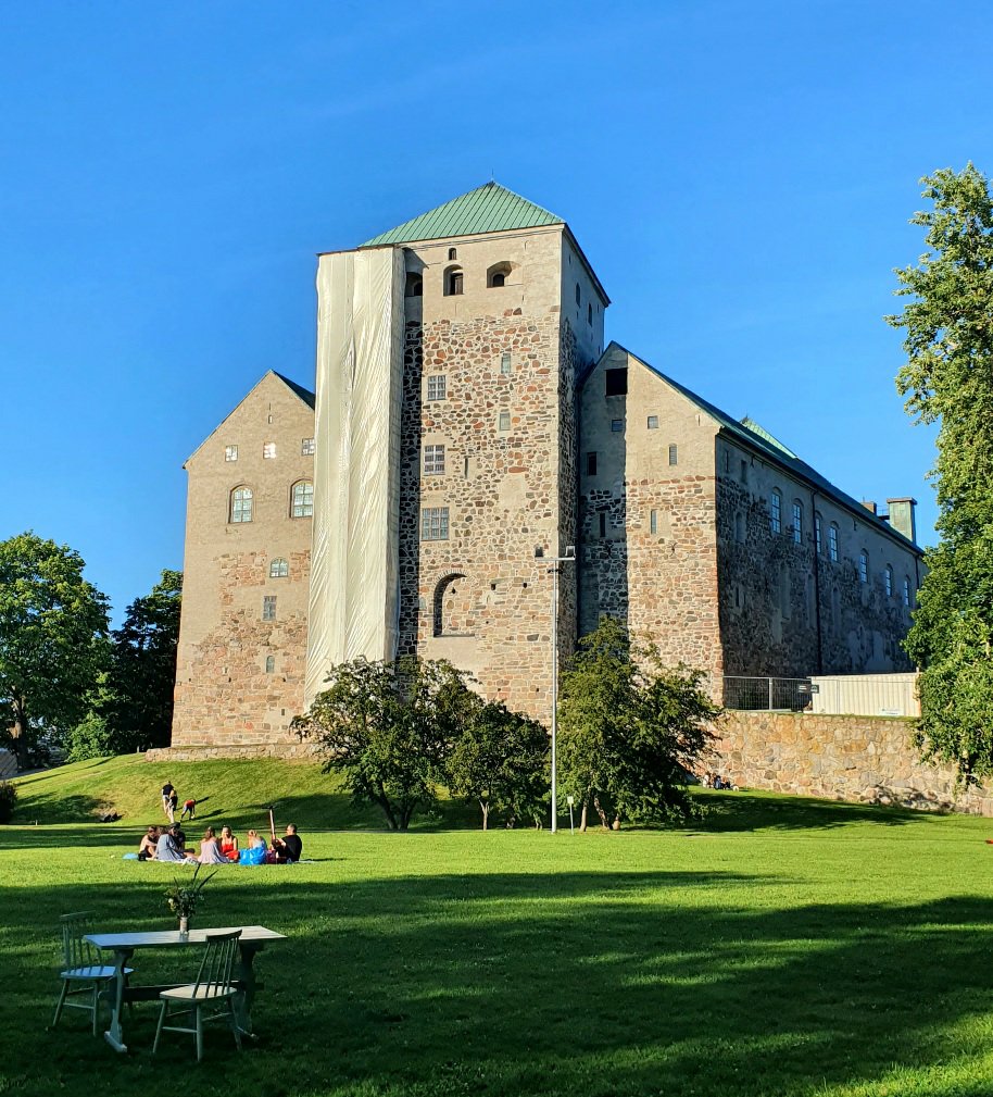 Ennen kotimatkaani kävimme vielä ihailemassa Turun linnaa. Myös Turun linnassa olen vieraillut kerran aiemmin, mutta siitäkin on jo noin 20 vuotta. Ja onhan tuo linna vaikuttava rakennus ja sen edustalla on kaunis puistoalue.