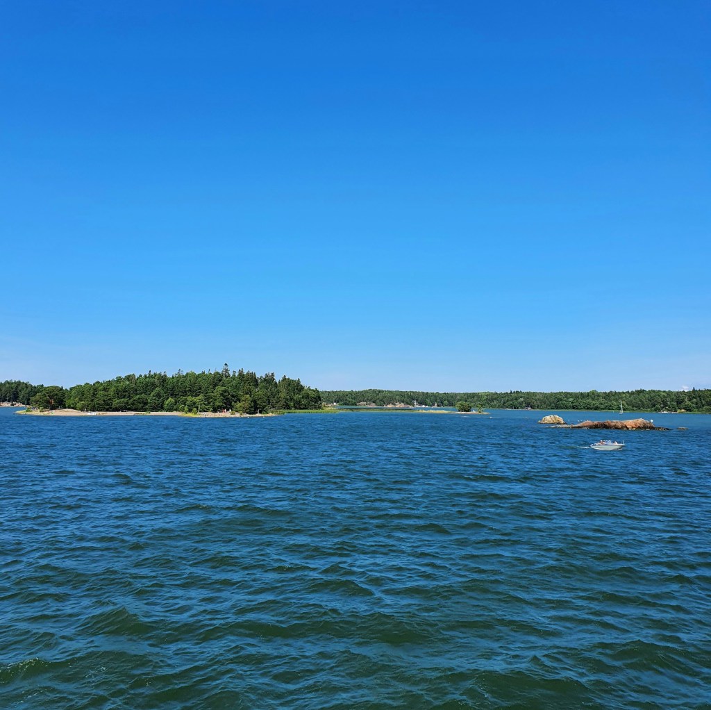 Rakastan merta ja tasaisesti kulkevan laivan kannella auringosta nauttiminen on minulle mieluisin tapa viettää kesäpäivää. Tämä höyrylaivaristeily oli juurikin sitä! Ukkopekalla oli mahdollisuus syödä myös lounas, joka vaikutti kyllä ihan hyvältä, sillä tarjolla oli kalaa, kanaa, kasviksia ja uusia perunoita. Me jätimme tällä kertaa lounaan väliin, koska olimme jo päättäneet tilata heti laivamatkan jälkeen Pub Niskasta ahvenanmaalaiset peltileivät, eli pitsat. Mutta siis tämä risteily itsessään oli ihana. Sää oli täydellinen, maisemat laivalta olivat kauniit ja opastuskuulutuksia oli juuri sopivasti ja ne olivat mielenkiintoisia.