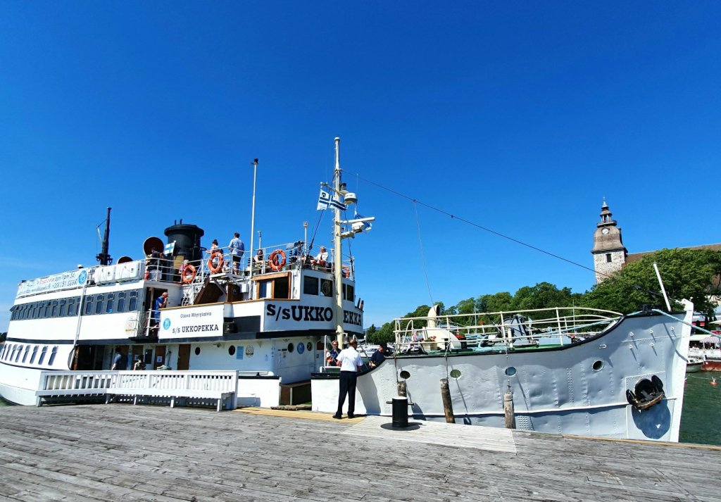 Olimme ostaneet jo ennakkoon liput Höyrylaiva Ukkopekalle, jotta pääsisin tutustumaan myös tuohon Naantalin ja Turun väliseen kauniiseen saaristoon. Tätä kahden tunnin risteilyä Ukkopekalla voin ehdottomasti suositella. Laiva kulkee siis Turku-Naantali-Turku -väliä ja yhdensuuntainen lippu maksoi 24 euroa, menopaluu olisi ollut 29 euroa. Mielestäni yksi matka oli kuitenkin riittävästi. Laivalla oli suuri kansi, jossa oli runsaasti istumapaikkoja ja hyvin pystyi pitämään turvavälit kanssamatkustajiin.